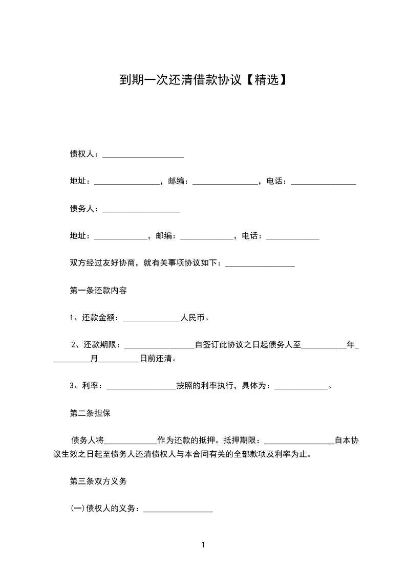 (1)第一期还款:应于[第一期还款日期]前支付人民币[第一期还款金额](大写:__________________)。