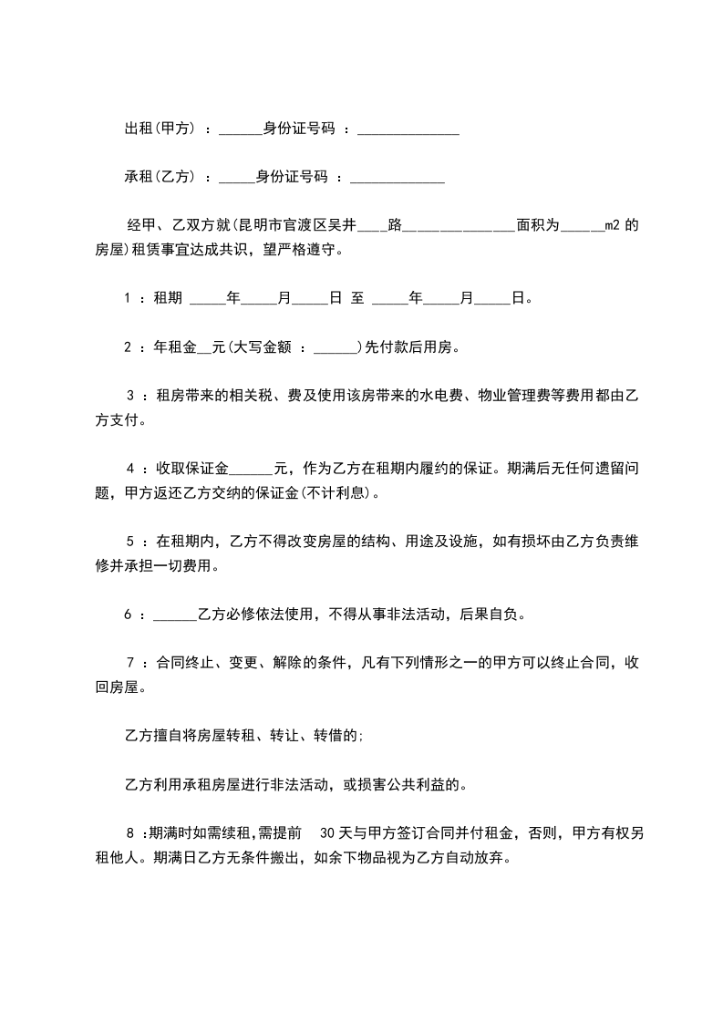 第二条房屋价格:该房屋房价为(人民币)________________元整;