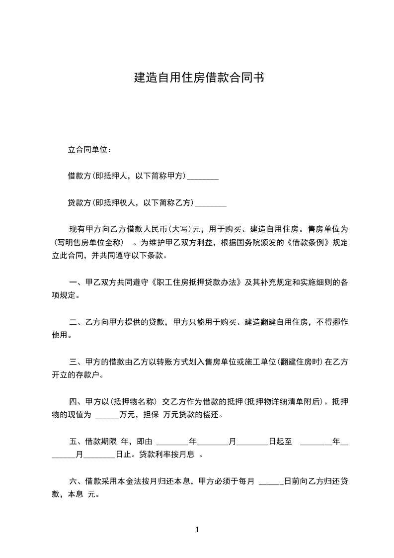 现有甲方向乙方借款人民币____________元,用于购买、建造自用住房。售房单位为。为维护甲乙双方利益,根据国务院颁发的《民法典》规定立此合同,并共同遵守以下条款。