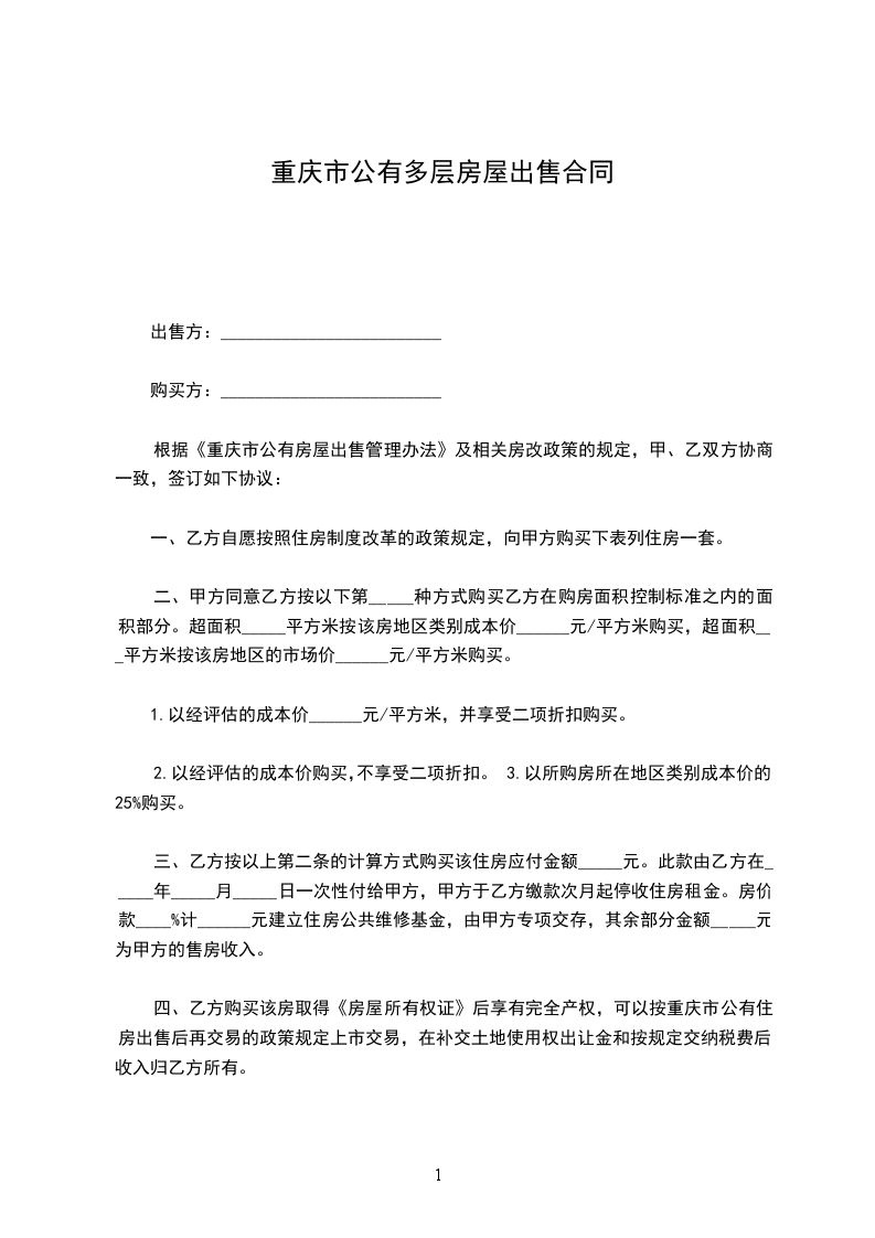 根据《重庆市公有房屋出售管理办法》及相关房改政策的规定,甲、乙双方协商一致,签订如下协议: