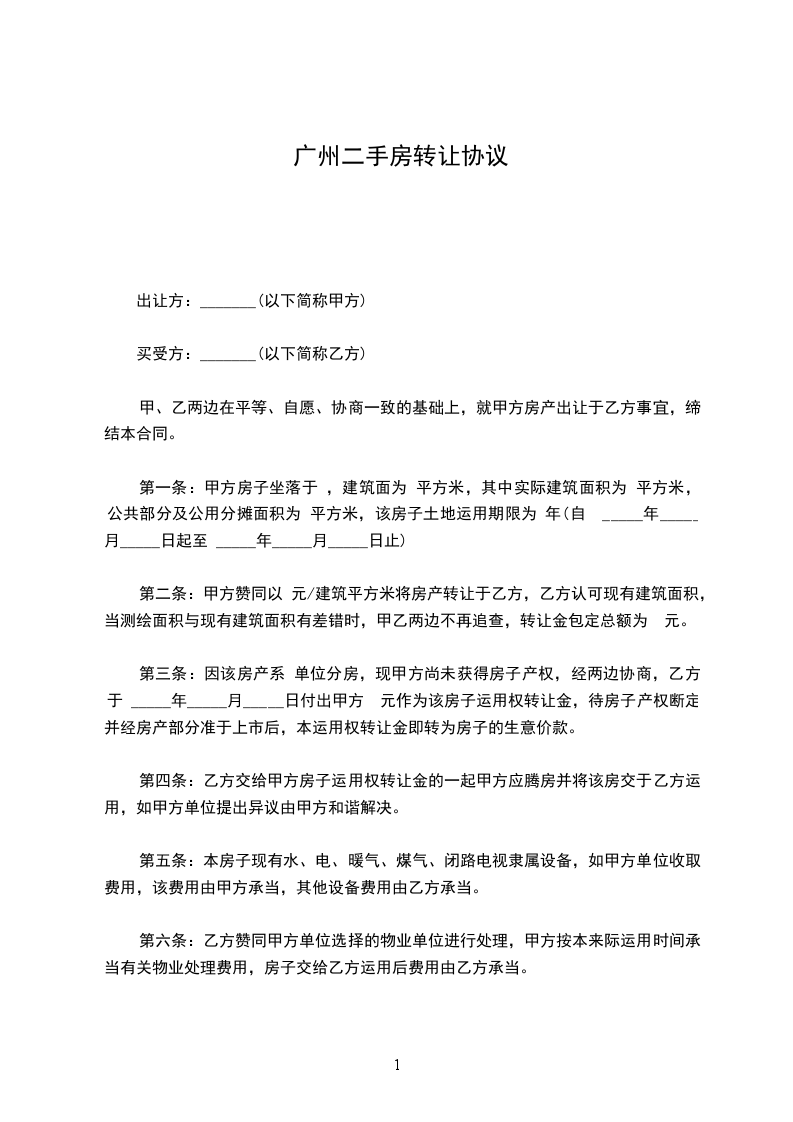 座落于广州市____________________,建筑面积为_____平方米;套内建筑面积__________平方米,公共部位与公用房屋分摊建筑面积____________平方米;