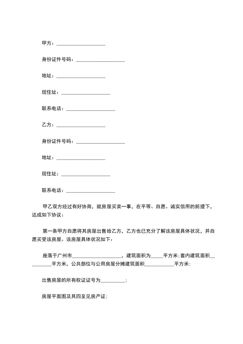 甲乙双方经过有好协商,就房屋买卖一事,在平等、自愿、诚实信用的前提下,达成如下协议: