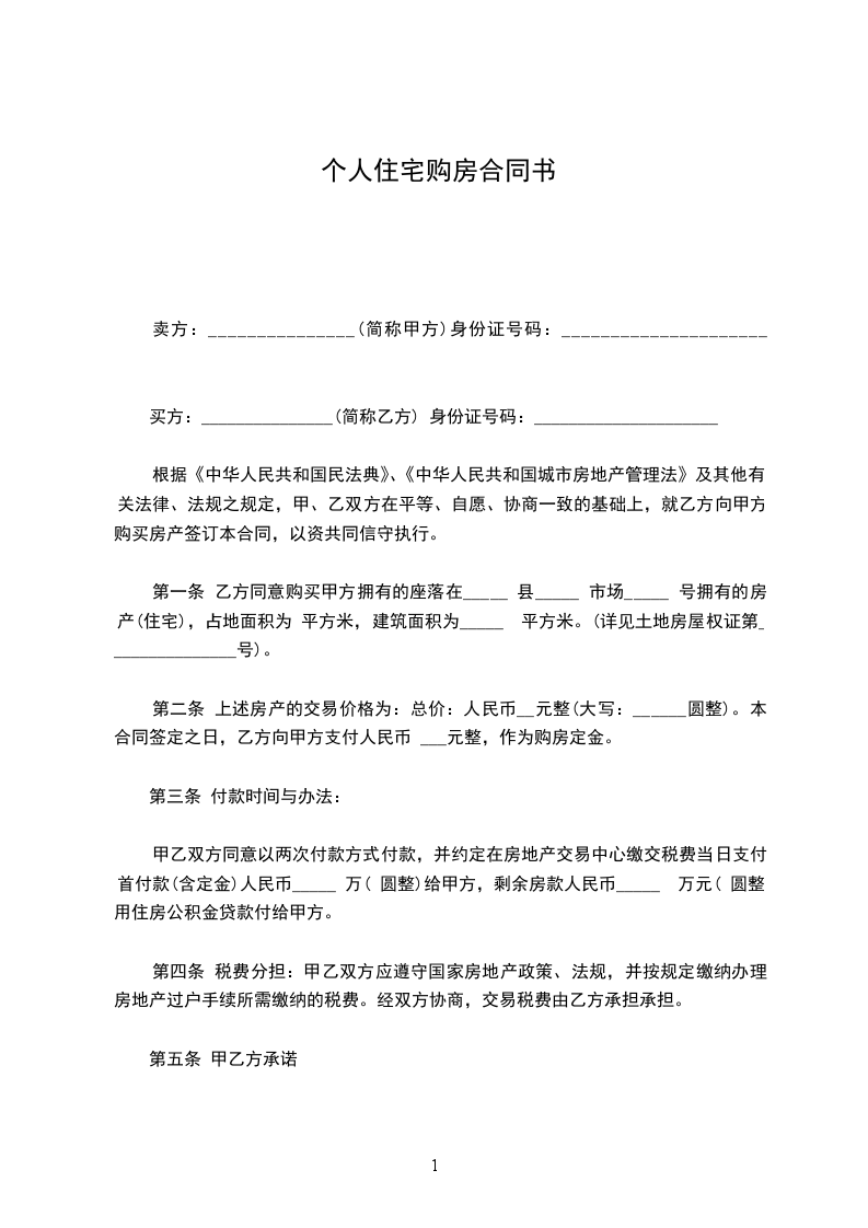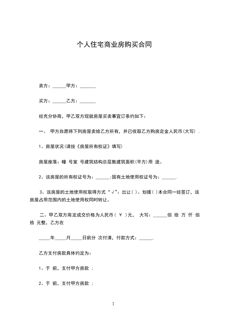 二、甲乙双方商定成交价格为人民币 元,大写: 佰 拾 万 仟 佰 拾 元整,乙方在 年 月 日前分 次付清,付款方式: 。乙方支付房款具体约定为: