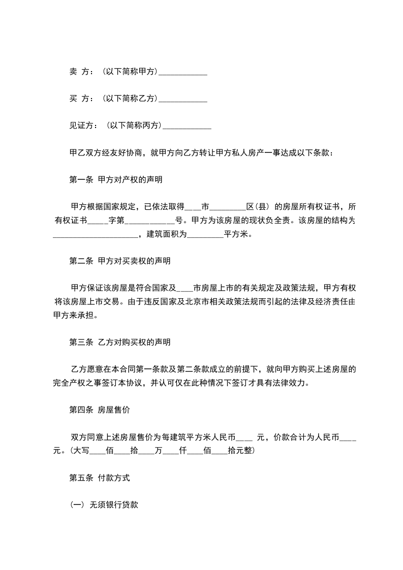二、经双方约定挂户房房屋总价,共计人民币:_________________元整。购买安置房价格以政府出台的为准,挂户房拆迁后政府安置房房屋一切费用由乙方支付。