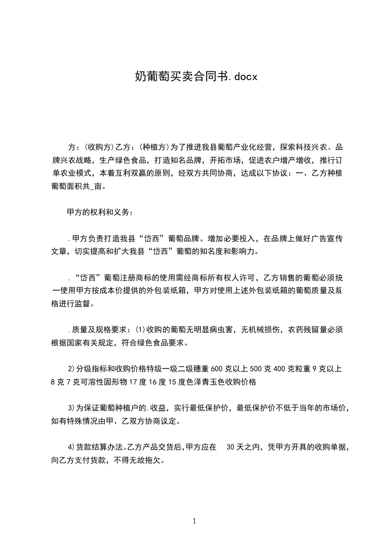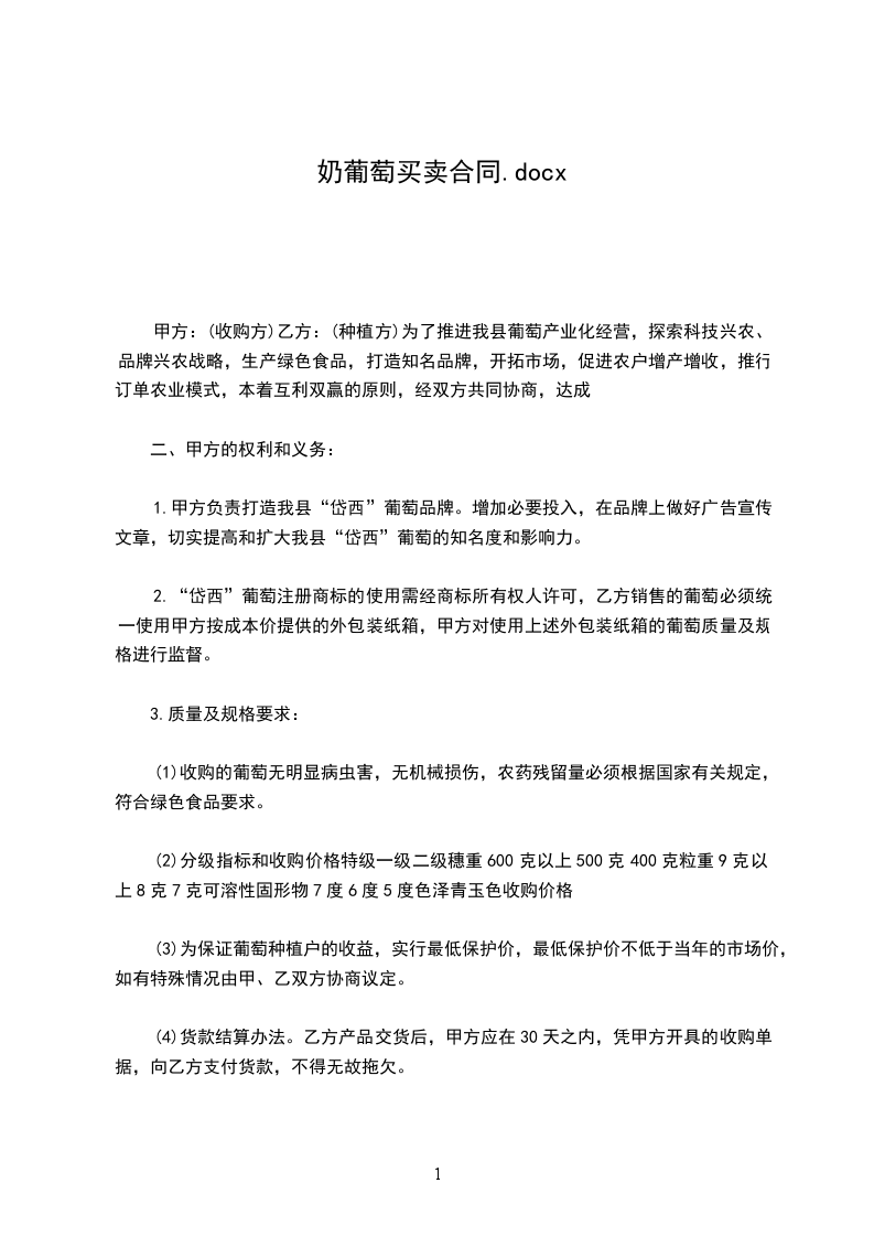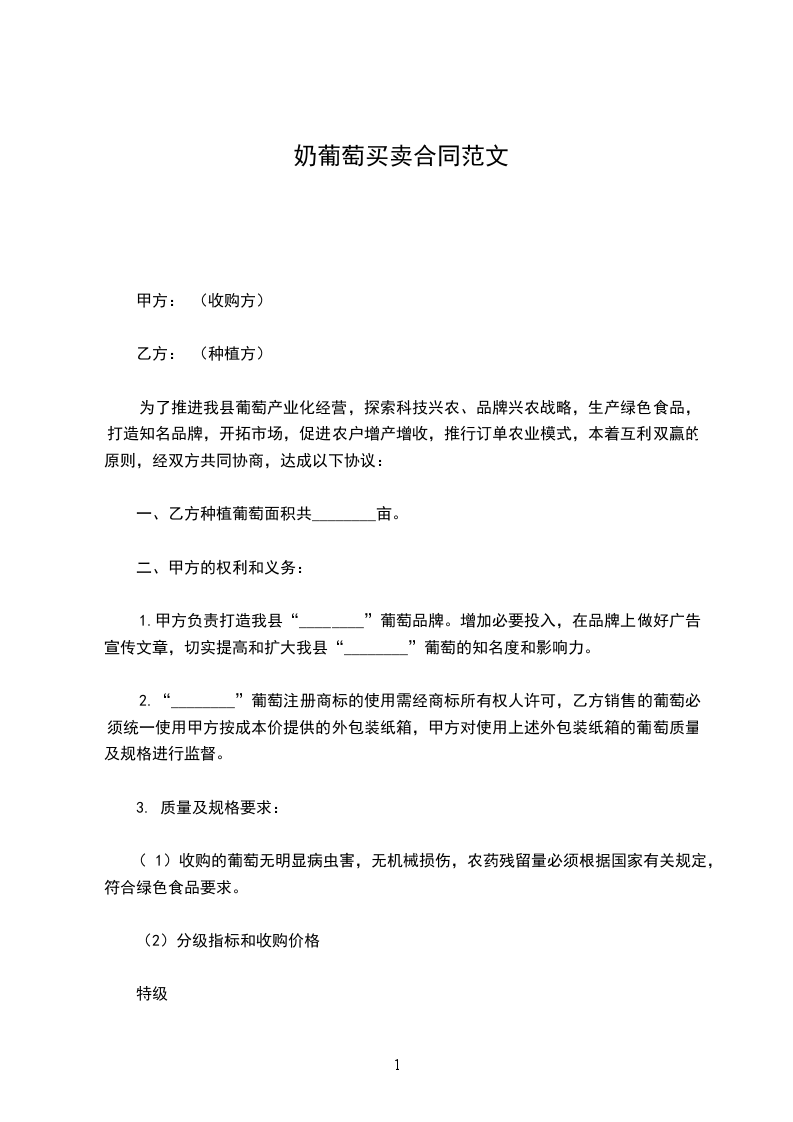 为了推进我县葡萄产业化经营,探索科技兴农、品牌兴农战略,生产绿色食品,打造知名品牌,开拓市场,促进农户增产增收,推行订单农业模式,本着互利双赢的原则,经双方共同协商,达成以下协议: