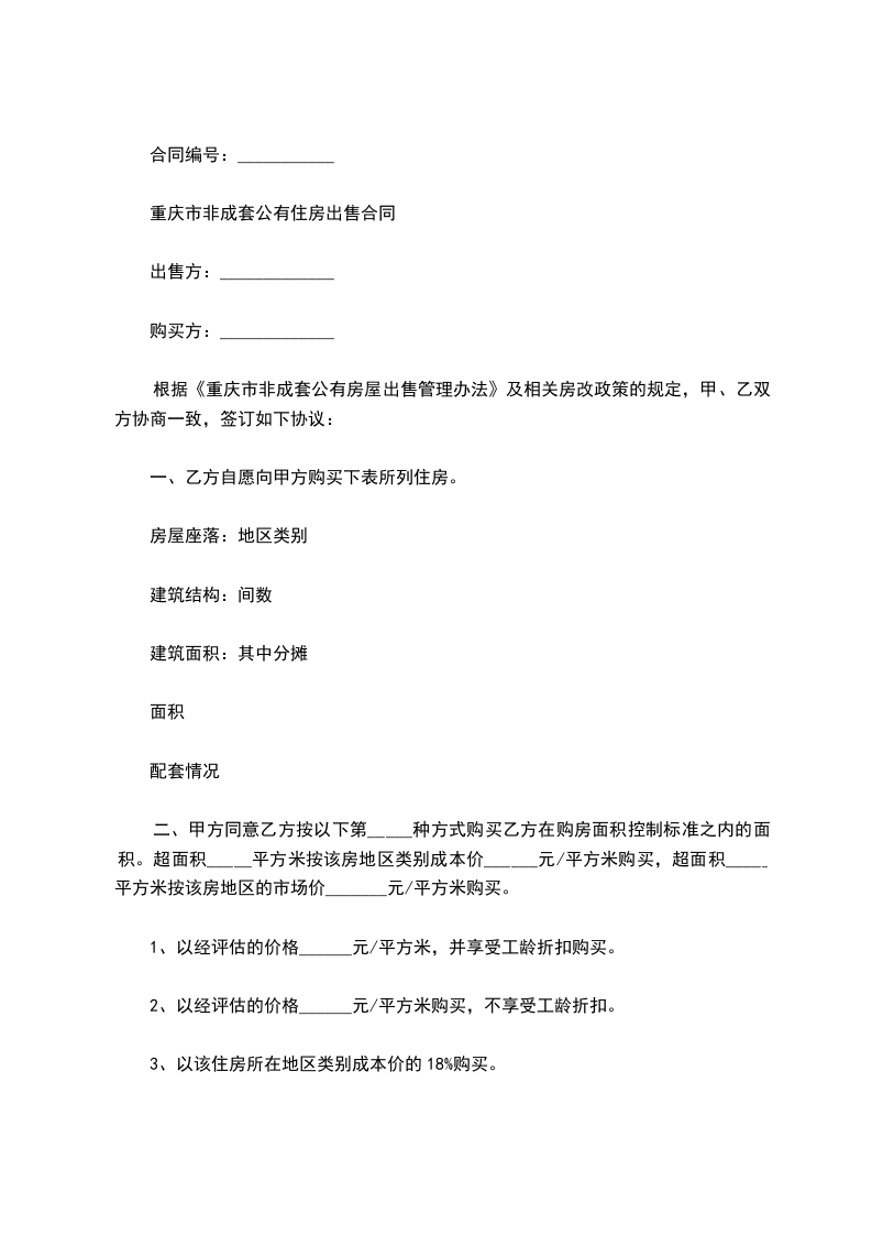 重庆市非成套公有住房出售合同