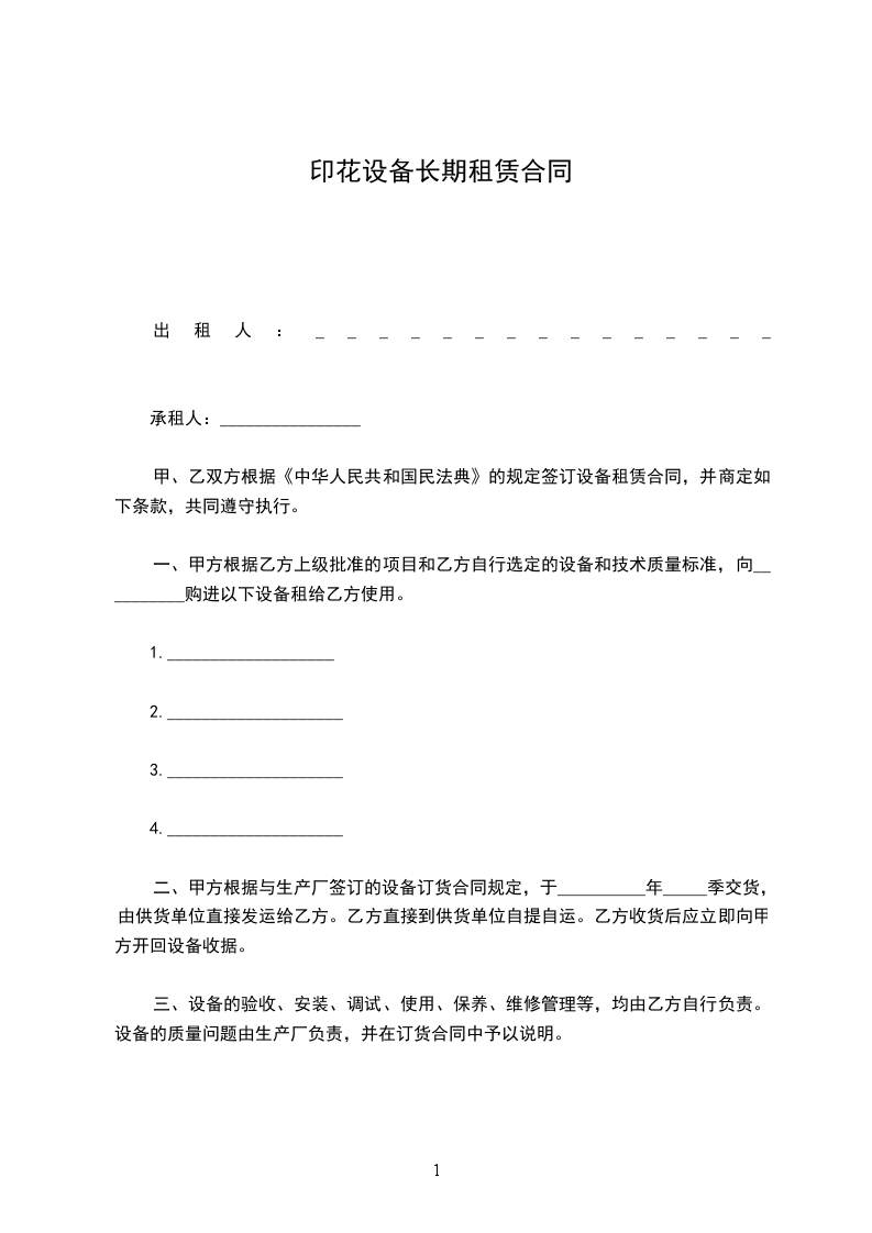 甲、乙双方根据《中华人民共和国民法典》的规定签订设备租赁合同,并商定如下条款,共同遵守执行。
