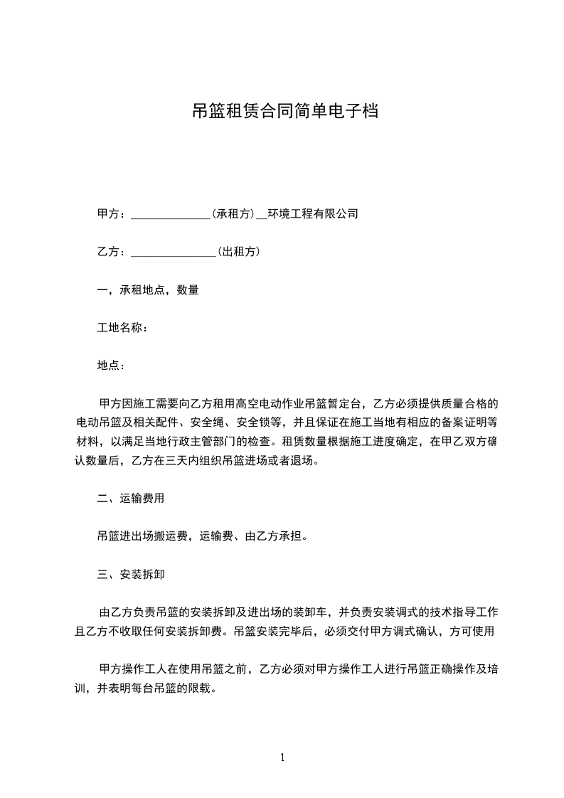 5.1每台吊篮进场使用前,需由乙方技术人员进行安装调试。