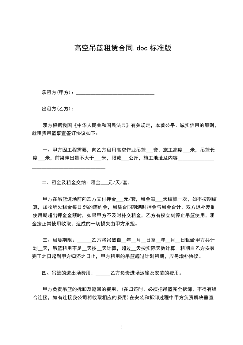 因甲方工程施工需要现向乙方租赁电动吊篮,根据《中华人民共和国民法典》及相关文件规定的精神,为明确甲、乙双方的权利和义务,双方友好协商特签订本合同,以供双方严格遵守执行。