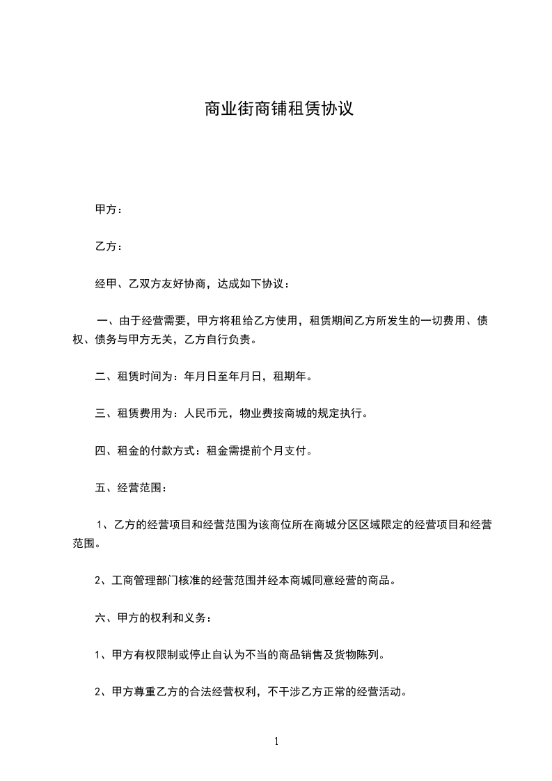 三、租赁费用为:人民币_____元,物业费按商城的规定执行。
