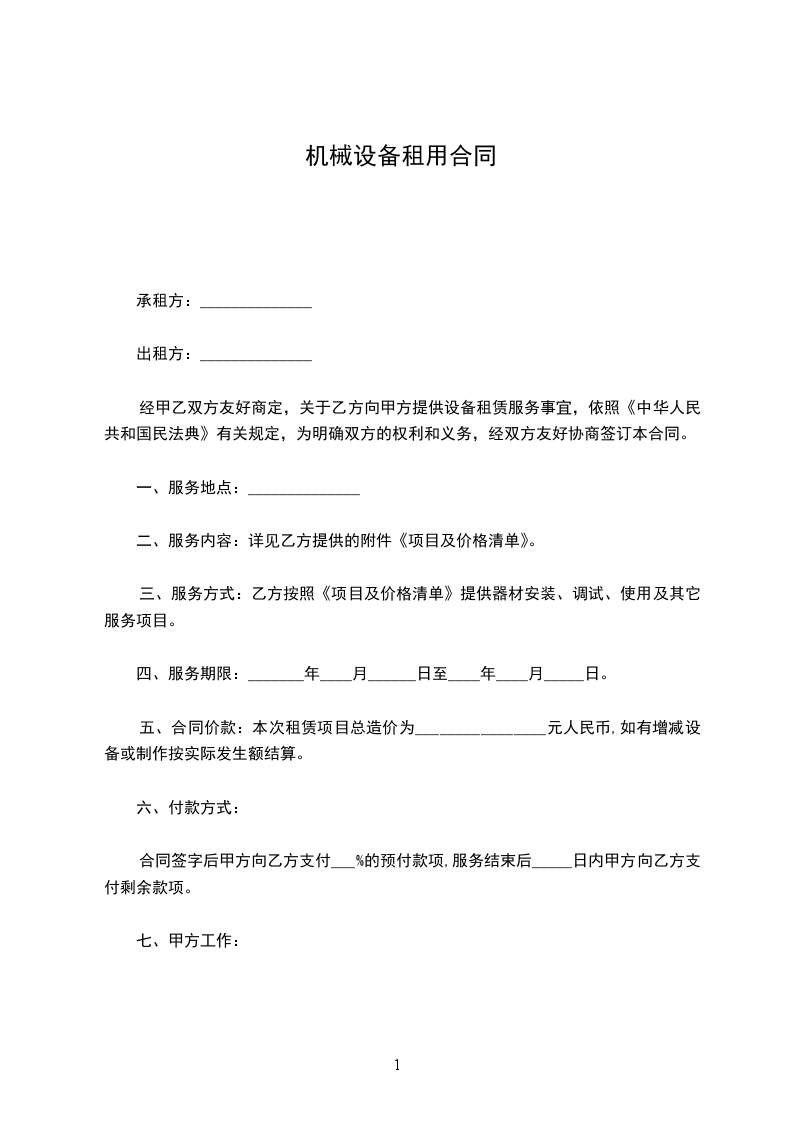 经甲乙双方友好商定,关于乙方向甲方提供设备租赁服务事宜,依照《中华人民共和国民法典》有关规定,为明确双方的权利和义务,经双方友好协商签订本合同。