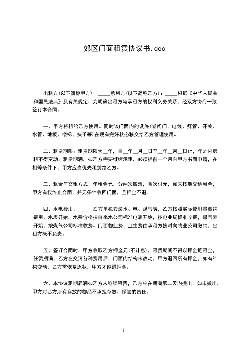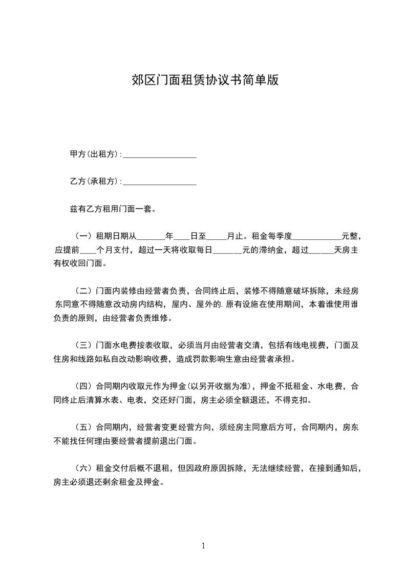 四、合同签订之日,乙方向甲方交付人民币_________________元整作为押金,待不租或期满费用算清后,甲方应将押金无息退还乙方。
