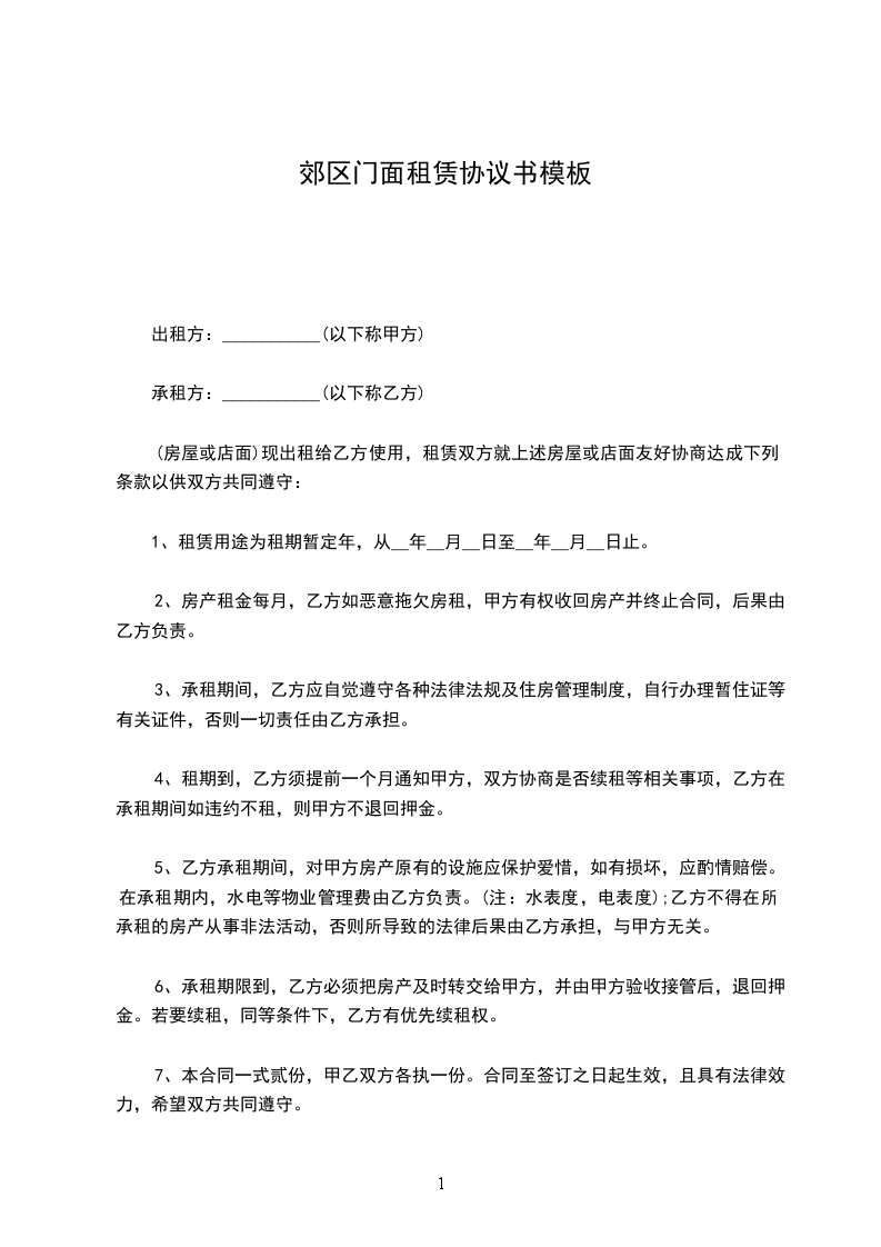 二、租赁期限:暂定______年,从_____年____月____日起至_____年____月____日止,每月租金为人民币___________________元整。