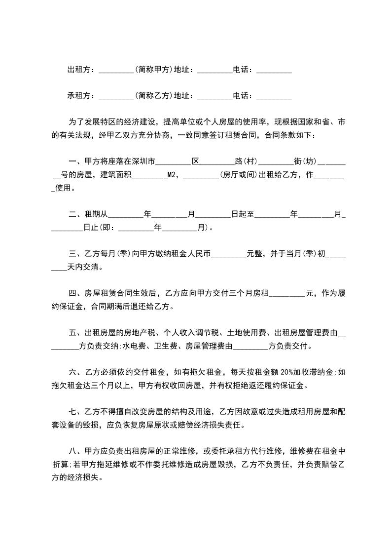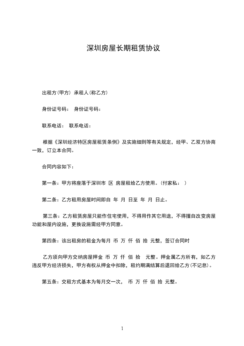 第一条本合同所指标的为深圳__区__花园_栋_单元_房间。