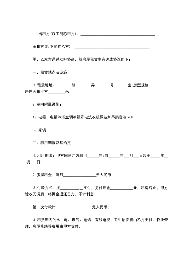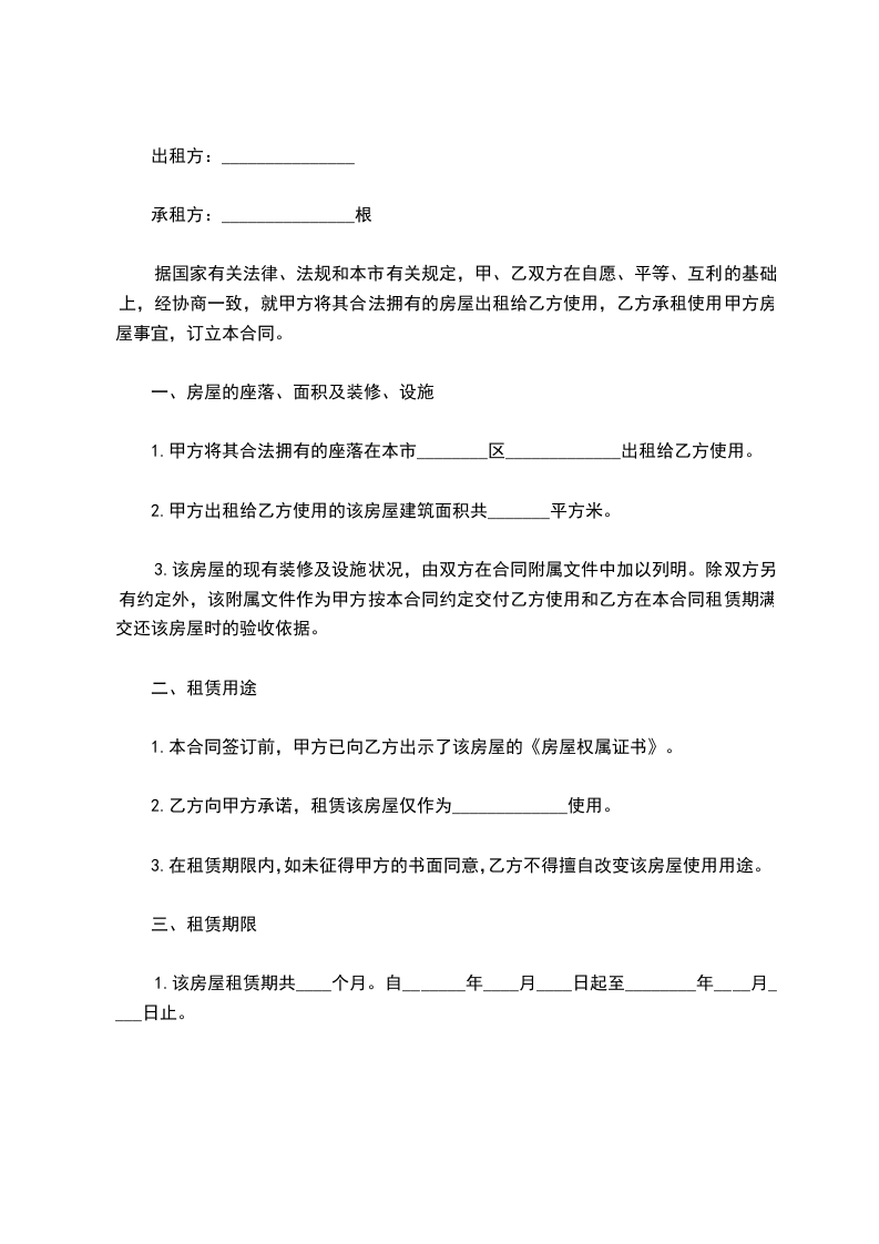 第二条:租赁期限租赁期从________年____月____日起至________年____月____日止,共计________年个____月。本合同期满后,在同等条件下,乙方有优先承租权。如乙方需要续租,须提前天向甲方提出续租书面申请,双方重新议定租金后,方可签订续租合同。否则,视为乙方不再继续租赁。