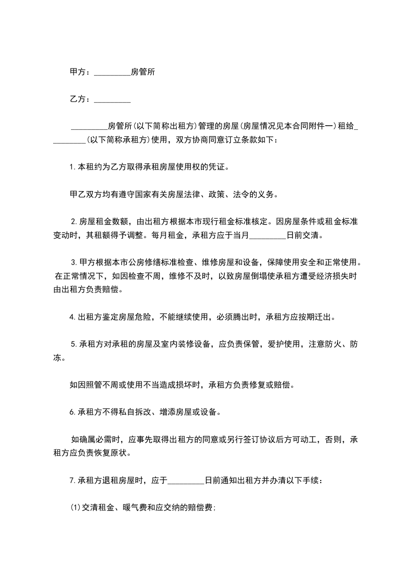 第七条:租赁期满