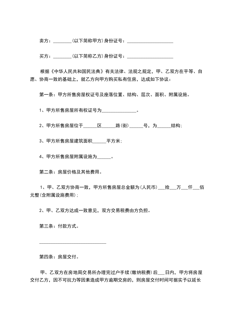第一条乙方同意购买甲方拥有的座落在______市_____区________________________拥有的房产住宅,建筑面积为_____平方米。