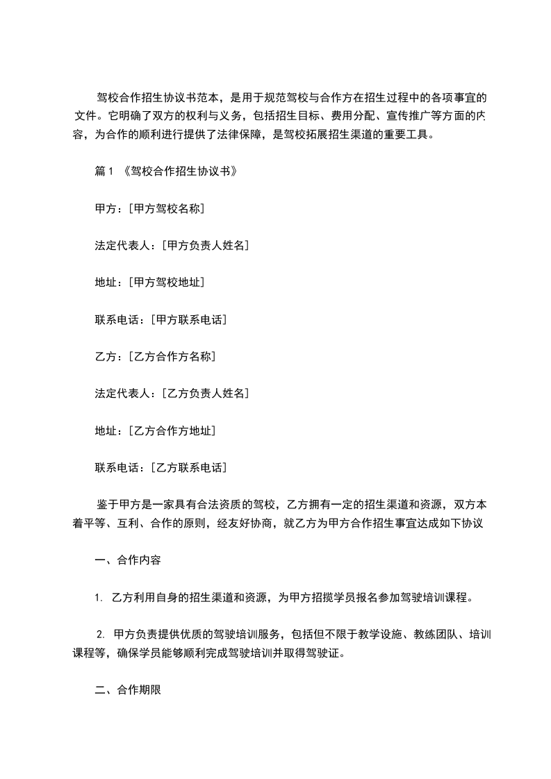 篇2《驾校招生合同范本》