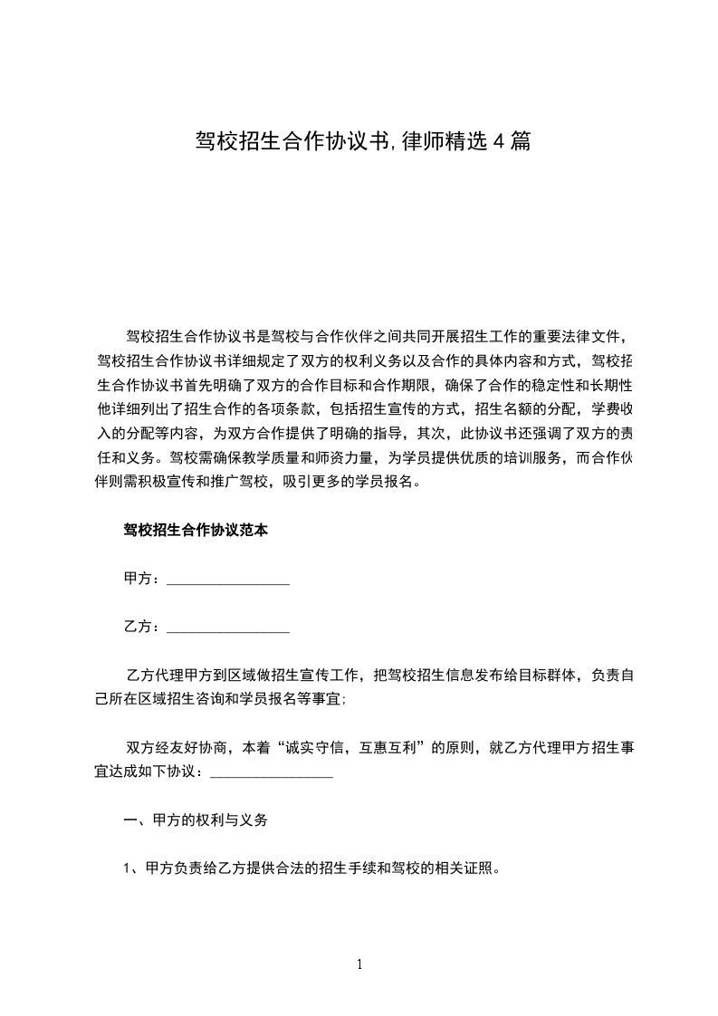篇1《驾校招生合同》