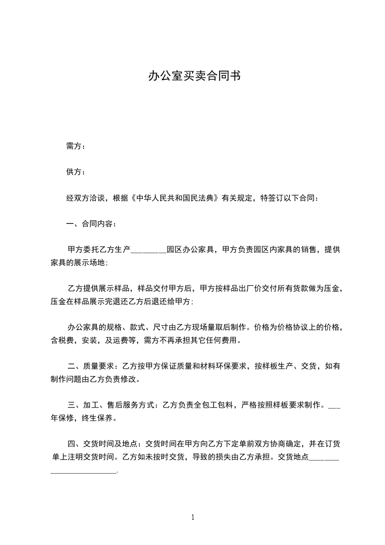 甲方委托乙方生产_________园区办公家具,甲方负责园区内家具的销售,提供家具的展示场地;
