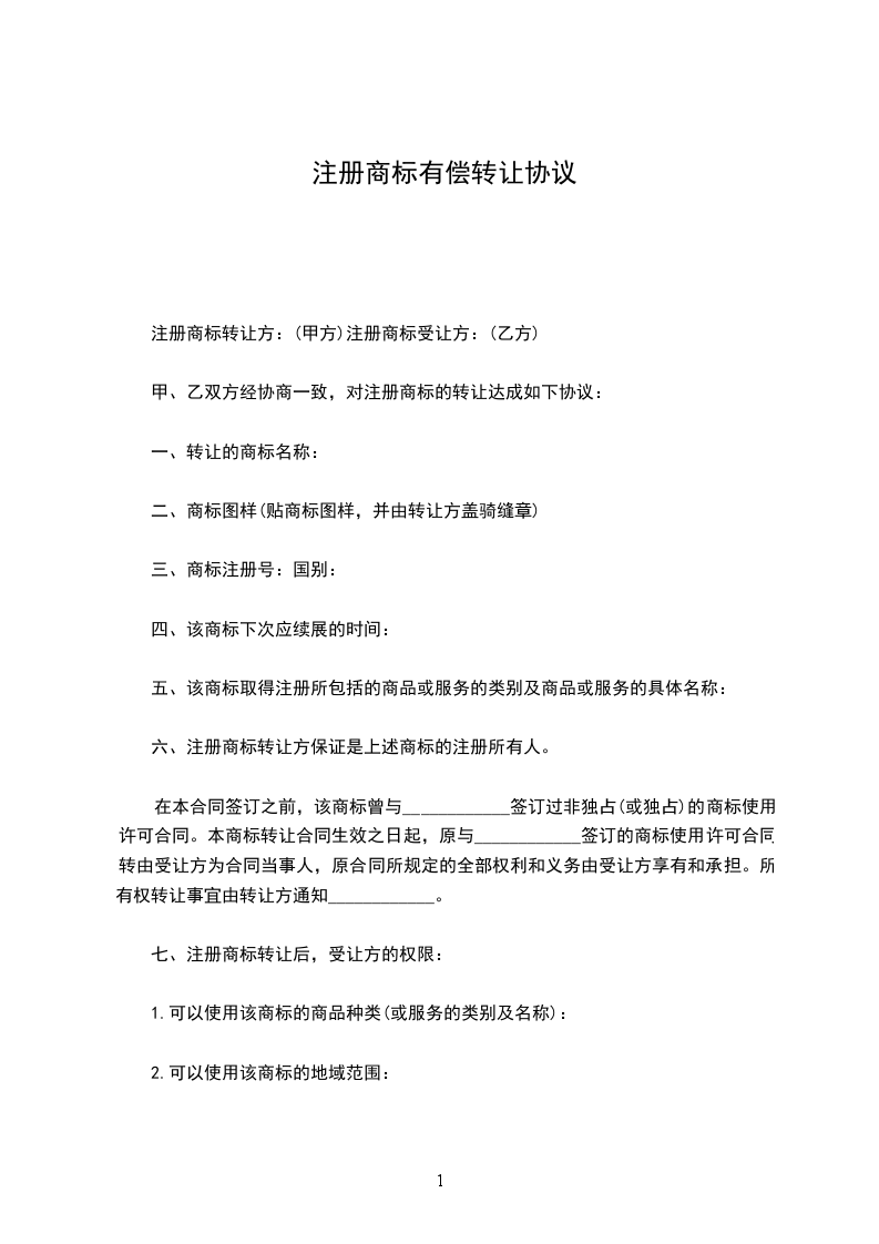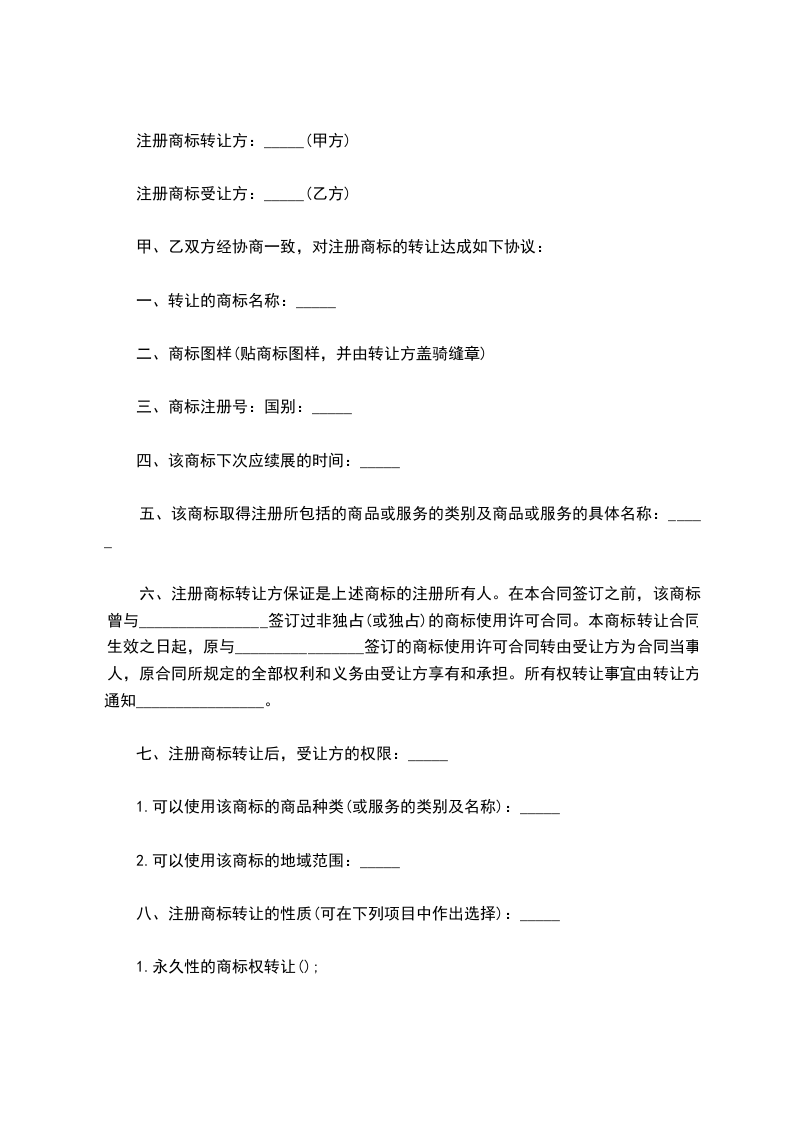 八、注册商标转让的性质(可在下列项目中作出选择):