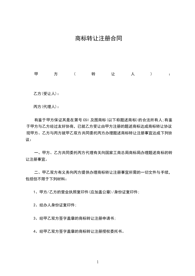 甲、乙双方经协商一致,对注册商标的转让达成如下协议: