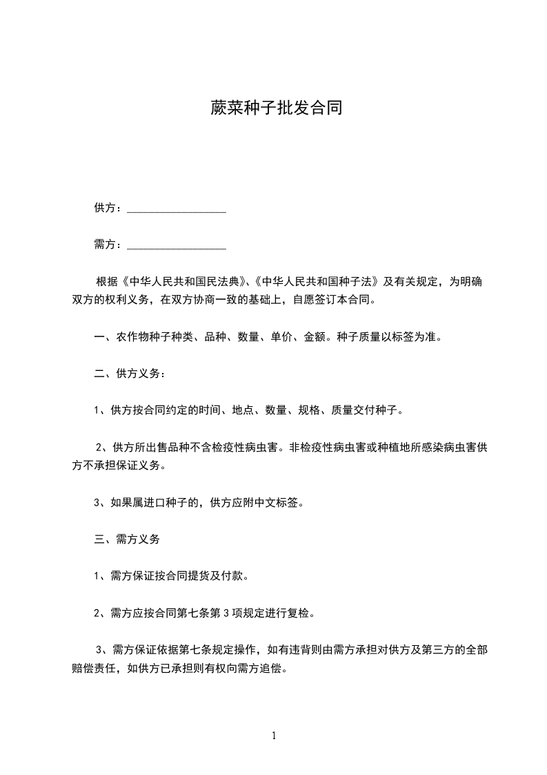 1、甲方有偿提供种子,甲方按每亩_________元种子发放,该种子款在乙方交售成品后,甲方从乙方得款中扣付。