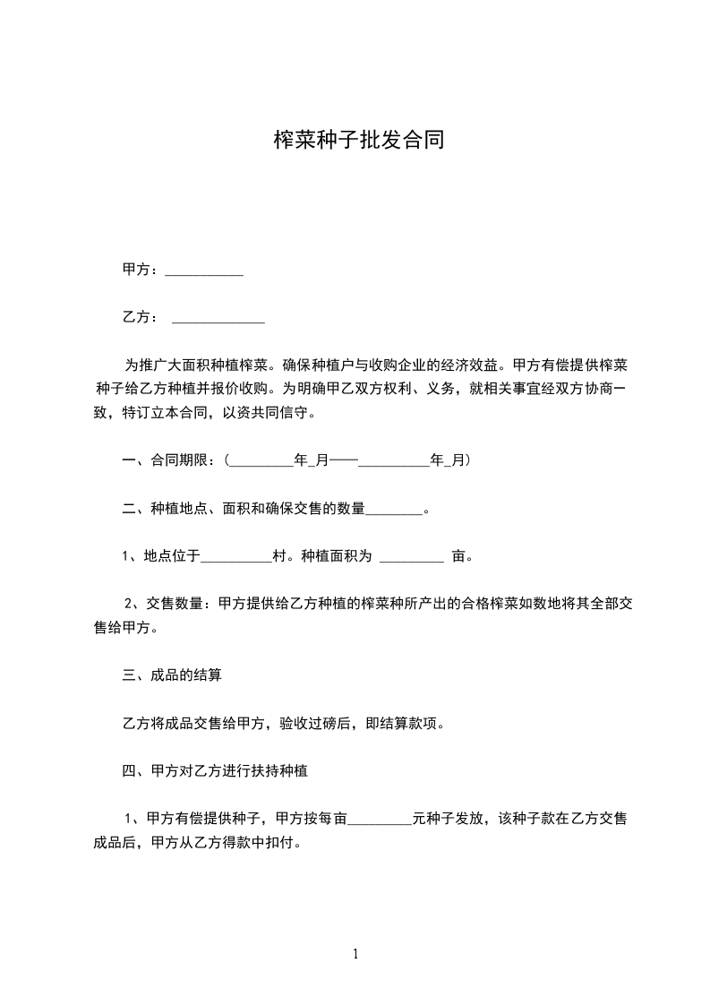 为推广大面积种植榨菜。确保种植户与收购企业的经济效益。甲方有偿提供榨菜种子给乙方种植并报价收购。为明确甲乙双方权利、义务,就相关事宜经双方协商一致,特订立本合同,以资共同信守。