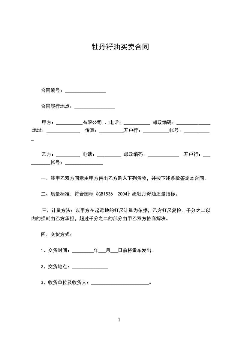 二、质量标准:符合国标《GB1536—2004》级牡丹籽油质量指标。