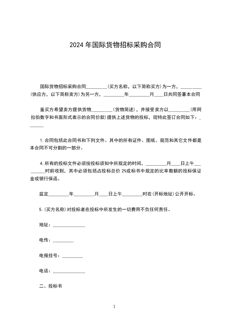 鉴于买方希望卖方提供货物_________(货物简述),并接受卖方以_________(用阿拉伯数字和书面形式表示的合同价款)提供上述货物的投标,现特此签订合同如下: