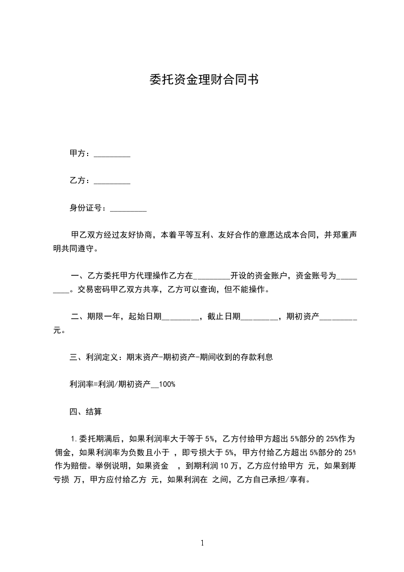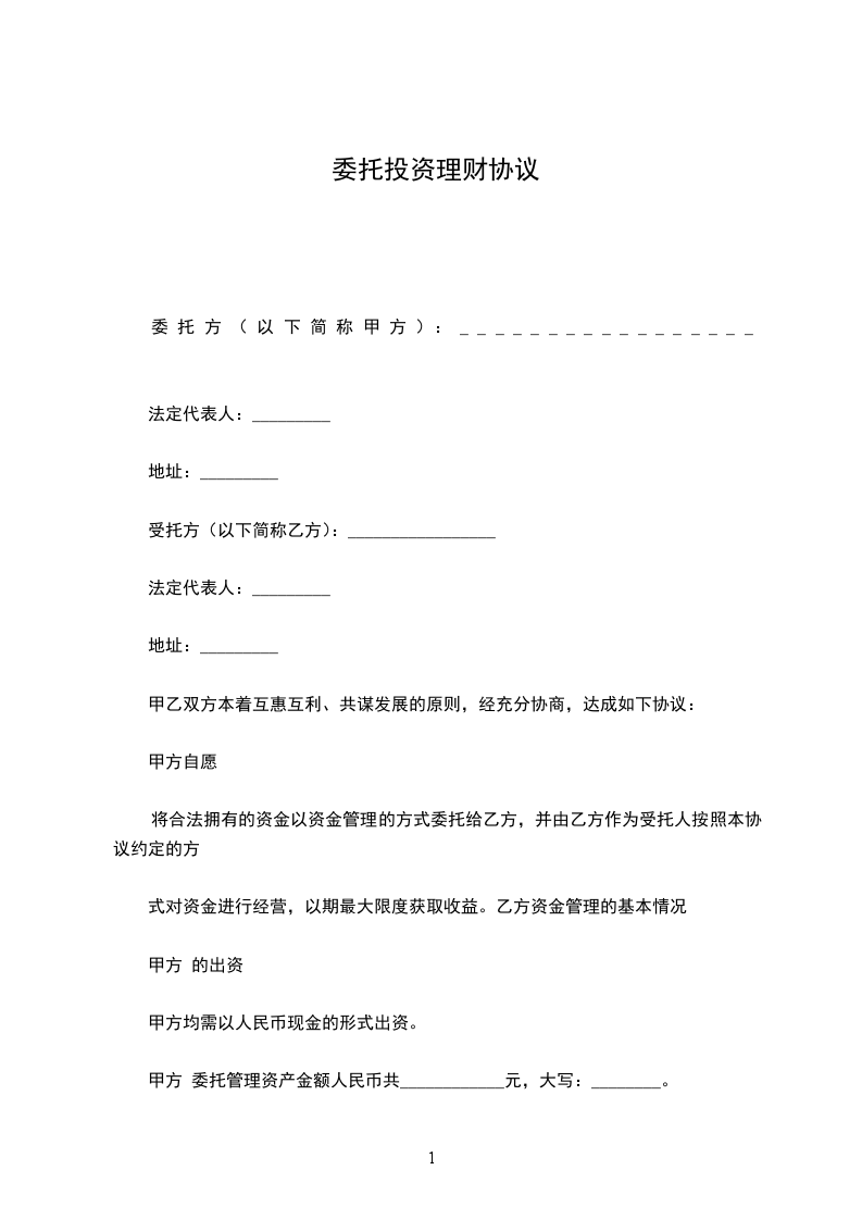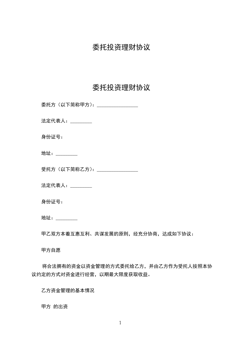 根据甲方______________与客户_____________签订的委托理财协议(编号:_________),本着友好互利、共同发展的原则,甲、乙双方经友好协商,达成以下协议: