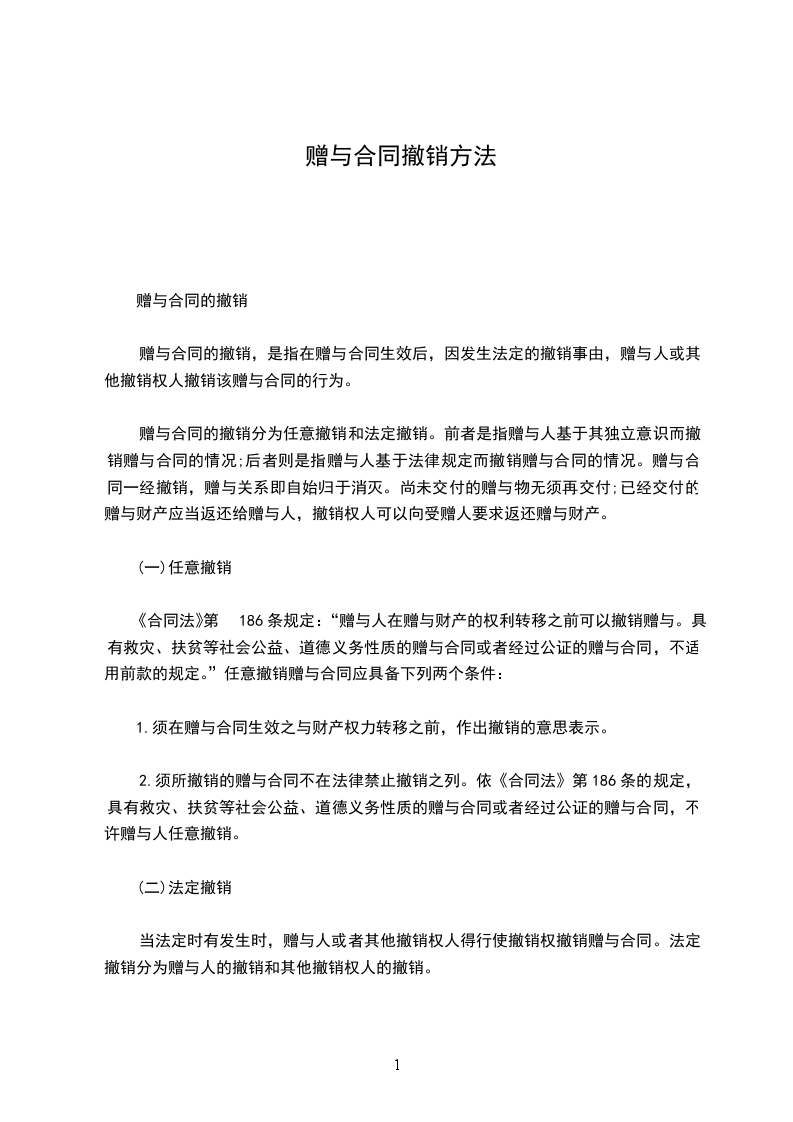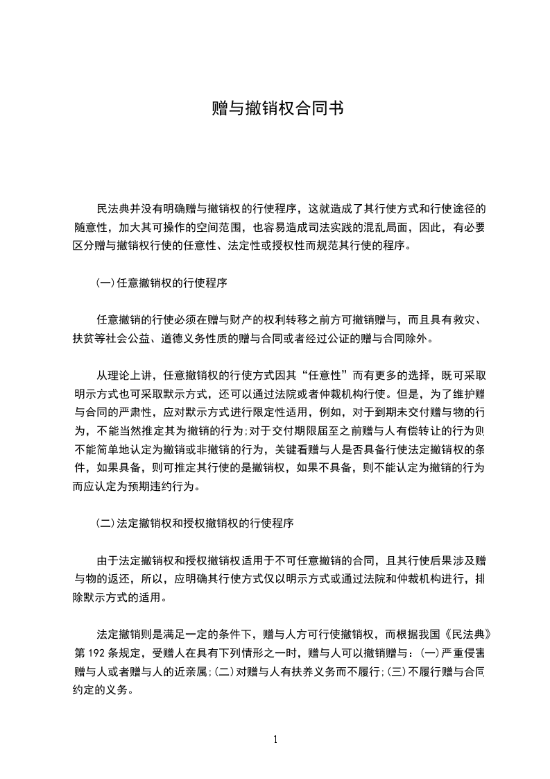 由于法定撤销权和授权撤销权适用于不可任意撤销的合同,且其行使后果涉及赠与物的返还,所以,应明确其行使方式仅以明示方式或通过法院和仲裁机构进行,排除默示方式的适用。