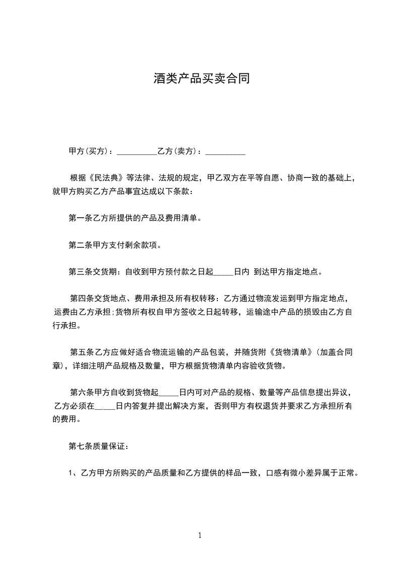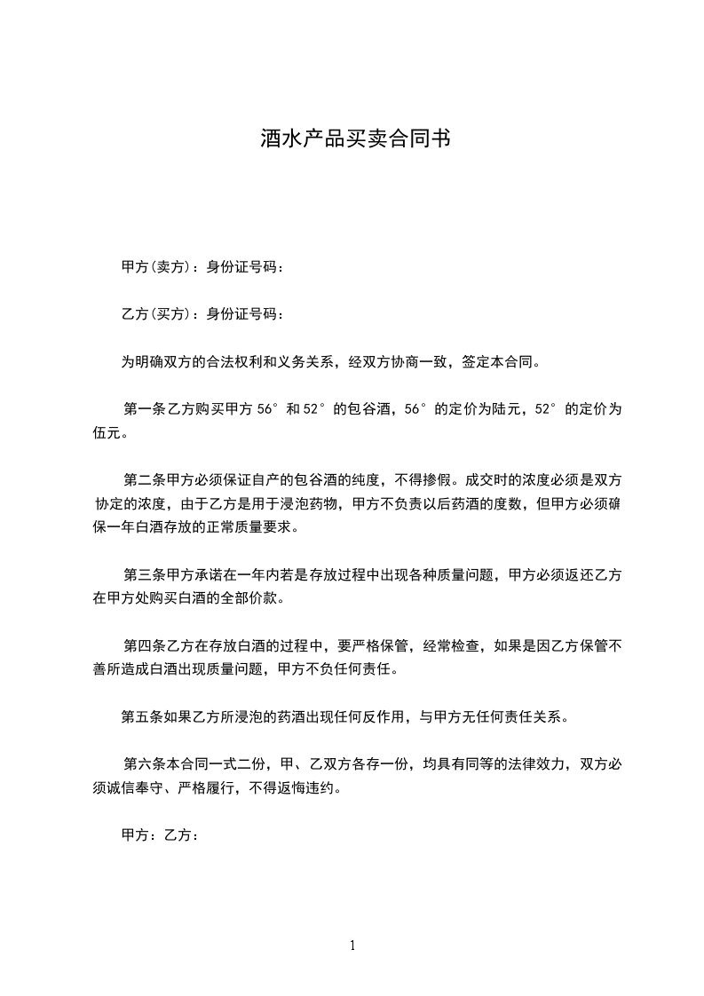 第二条甲方必须保证自产的包谷酒的纯度,不得掺假。成交时的浓度必须是双方协定的浓度,由于乙方是用于浸泡药物,甲方不负责以后药酒的度数,但甲方必须确保一年白酒存放的正常质量要求。
