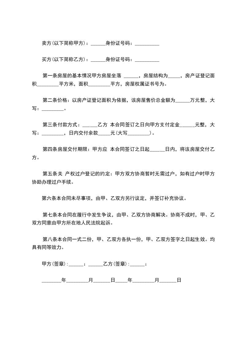 买受人:_________身份证号码:______________________________乙方为________省________市______区/镇__________居民