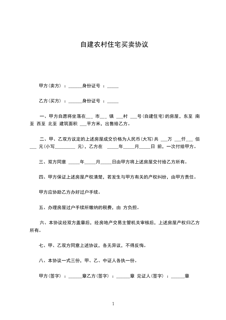 出卖人:_________身份证号码:___________________甲方为______省_____市_____区/镇________居民甲方配偶:_________身份证号码:_____________房屋地址:___农村集体土地使用证号码:__________________________