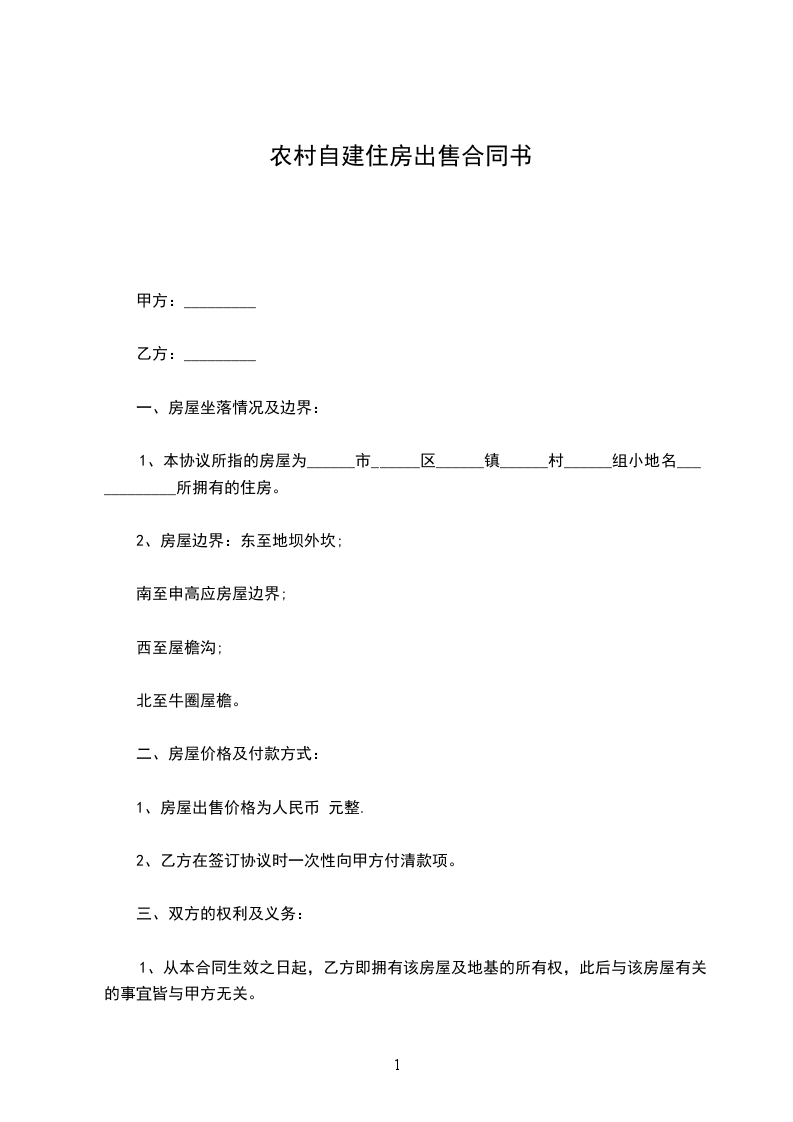 农村自建住房出售协议书,是农村地区用于规范自建住房出售行为的重要文件。它明确了买卖双方的权利和义务,涵盖了房屋的具体情况、价格、付款方式等关键内容,为农村自建住房的交易提供了法律保障,确保交易的公平、合法与有序。