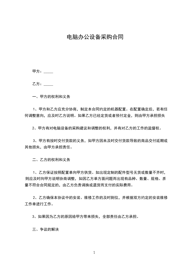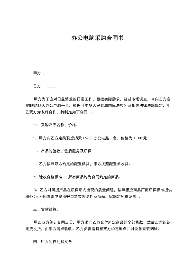 今甲方向乙方采购一批电脑,为友好合作,特定如下协议。