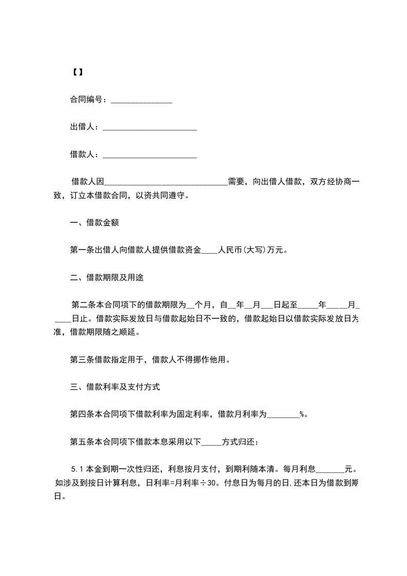 第一条出借人向借款人提供借款资金____人民币(大写)万元。