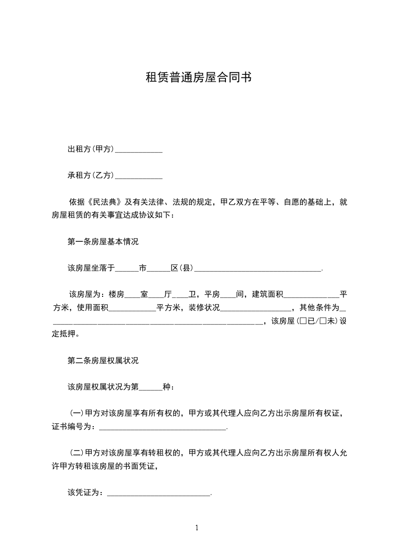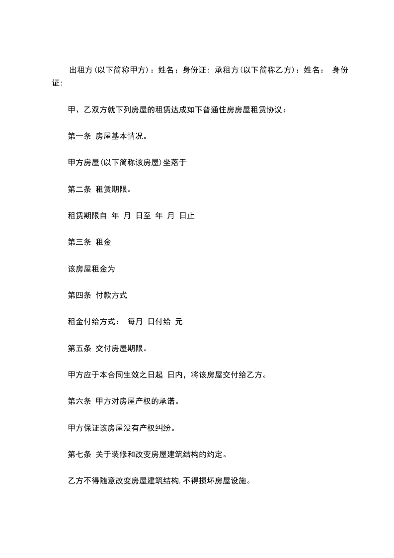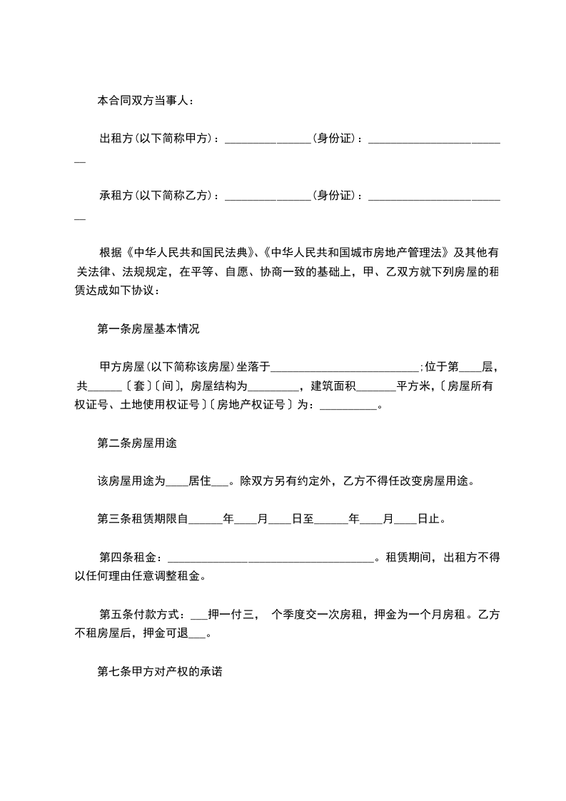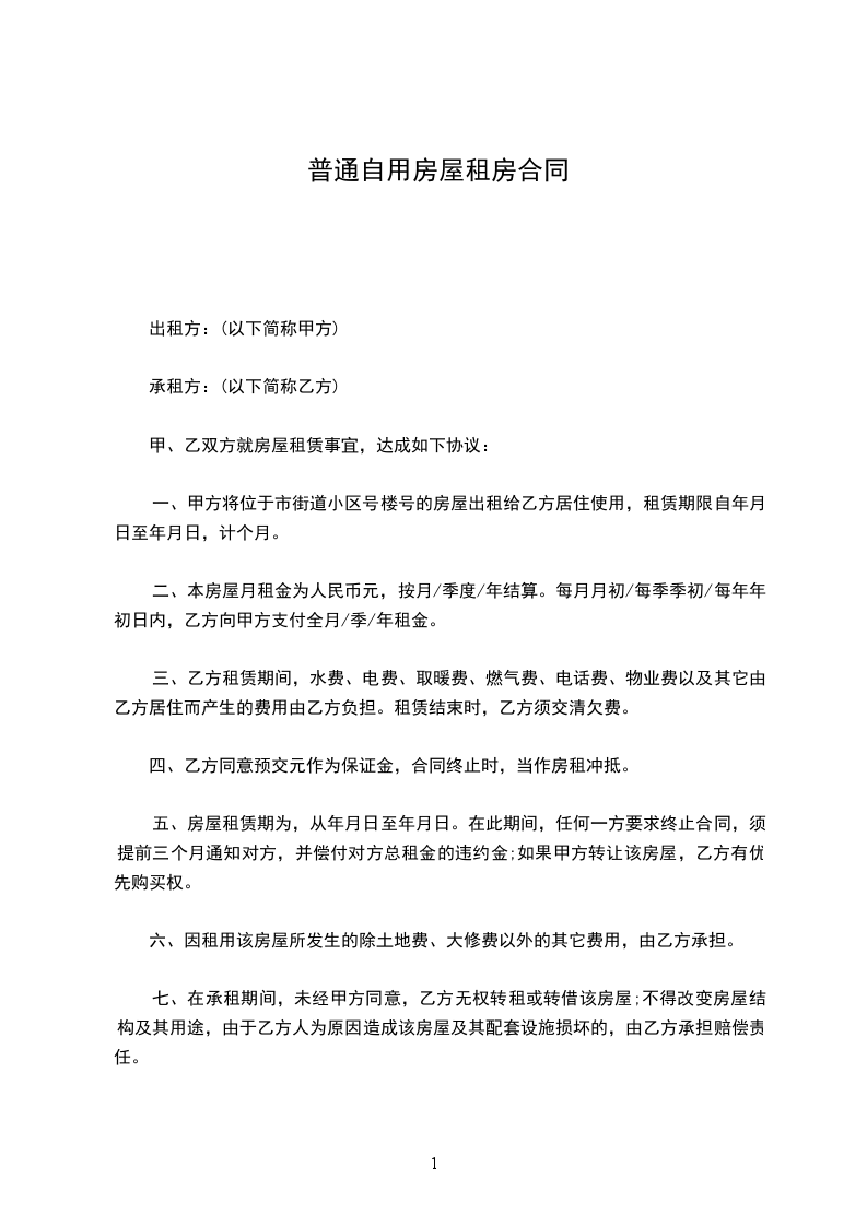 一、甲方将位于市街道小区号楼号的房屋出租给乙方居住使用,租赁期限自______年____月____日至______年____月____日,计_____个月。