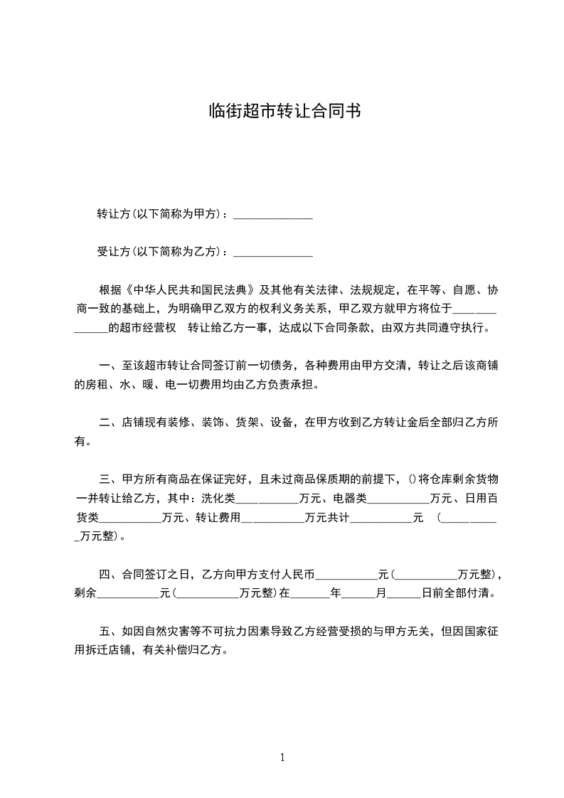 临街超市转让,这份协议书至关重要。它明确了转让双方的权利与义务,涵盖超市的资产、债务等细节。从超市的地理位置到经营状况,从转让价格到交付时间,一一清晰呈现,为转让过程提供坚实保障,避免后续可能出现的纠纷。