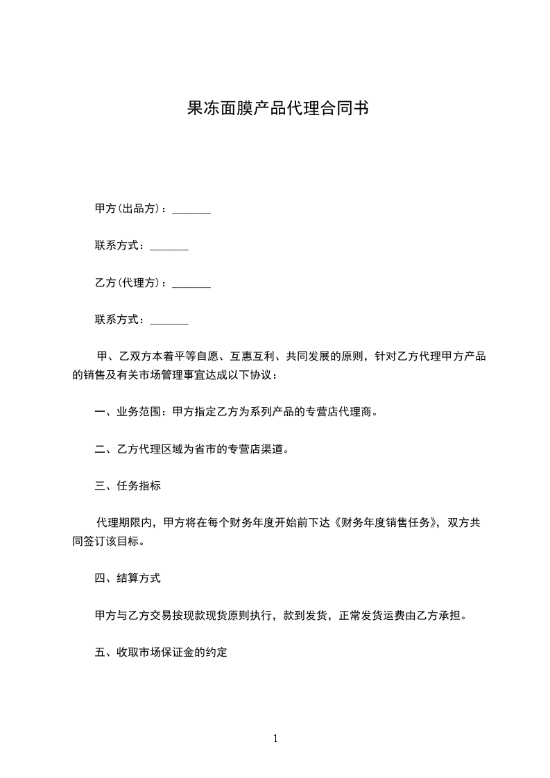 8、附则 8.1本协议同时得到甲乙双方的完全理解和认同,并替代此前的所有协议,不论是口头的还是书面的。在打印或填写过程中,未经乙方书面同意,甲方不得随意更改本合同中的任何条款。本协议经双方签字盖章生效后,任何更改均需双方协商一致并以书面形式确认。 8.2一方变更通知、通讯地址或其它联系方式,应自变更之日起____日内,将变更后的地址、联系方式通知另一方,否则变更方应对此造成的一切后果承担责任。 8.3本合同由双方代表签字盖章后生效,有效期________年。合同期满若双方均无异议,则本合同继续有效;若续约期内乙方制定出新的合同条款,则双方另签新合同。上述情况下甲方的业务结算累计进行。 8.4本协议一式二份,双方各执一份,经签字、盖章后生效,二份协议具有同等法律效力。 甲方:乙方: 代表签字:代表签字:)