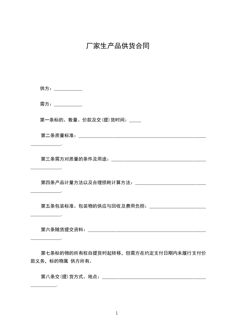 1.甲方如中途变更产品花色、品种、规格、质量或包装的规格,应偿付变更部分货款(或包装价值)总值____%的罚金。