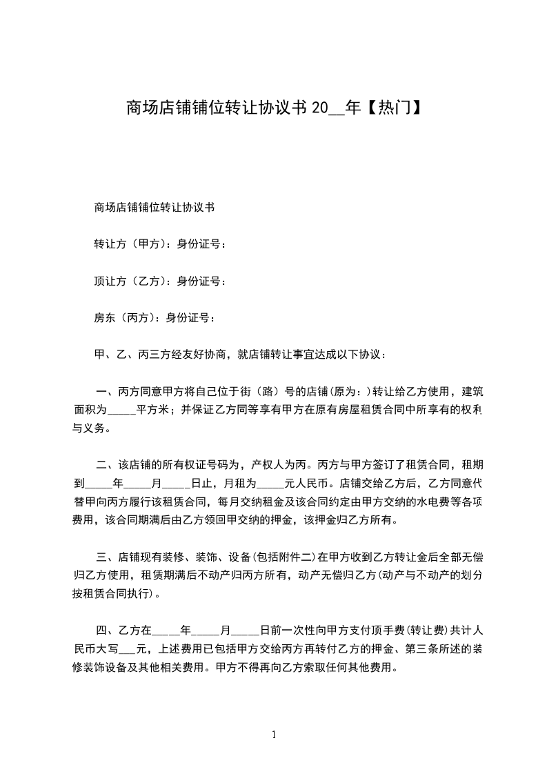 商场店铺转让合同一直备受关注,它是商场店铺交易的重要法律文件。合同中涵盖了诸多关键条款,如店铺基本信息、转让价格、付款方式等。热门的商场店铺转让合同往往能清晰界定双方权利义务,避免后续纠纷,是商场店铺转让过程中不可或缺的环节。