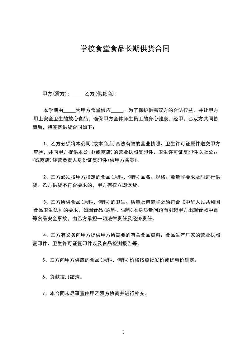 本学期由_____为甲方食堂供应_____。为了保护供需双方的合法权益,并让甲方用上安全卫生的放心食品,确保甲方全体师生员工的身心健康,经甲、乙双方共同协商后,特签定供货合同如下: