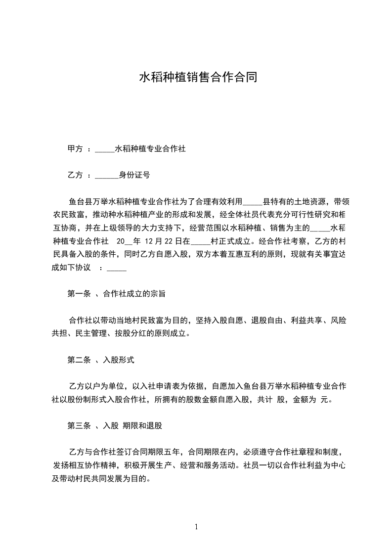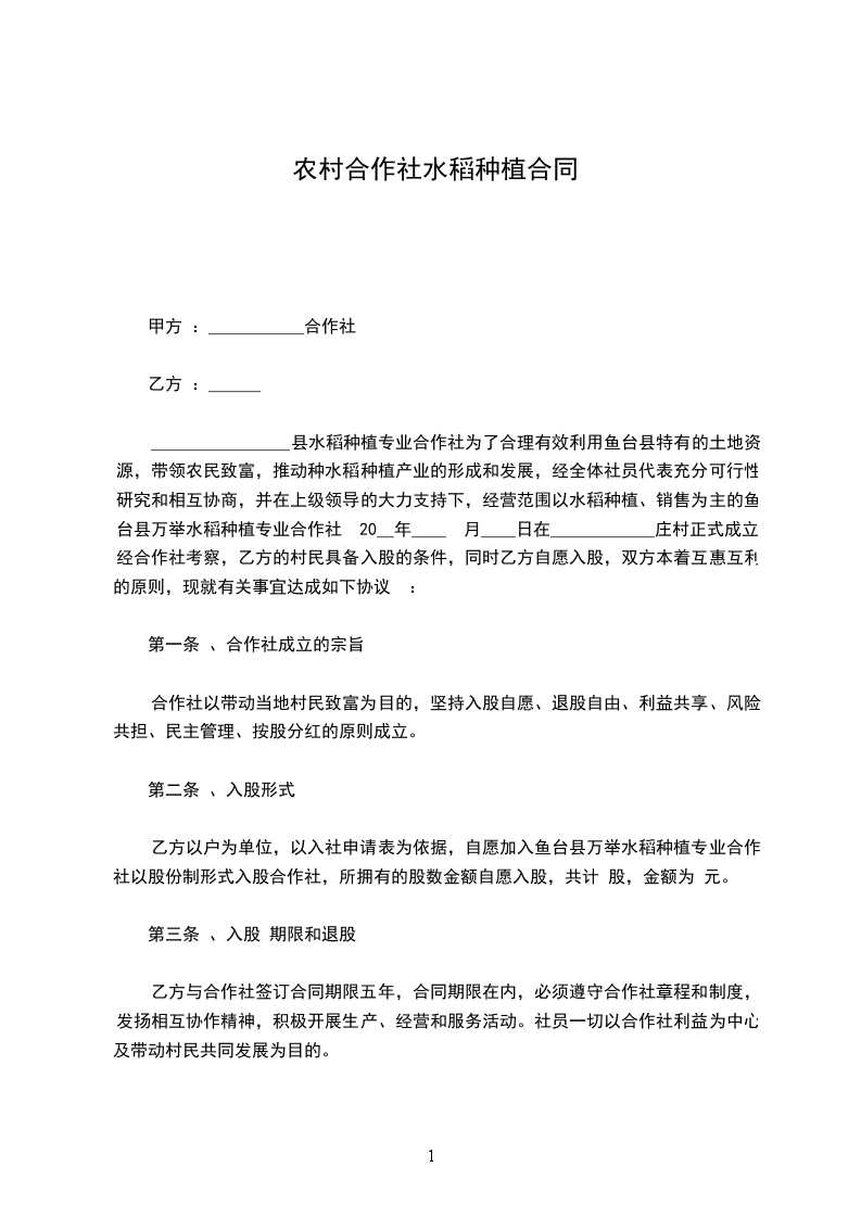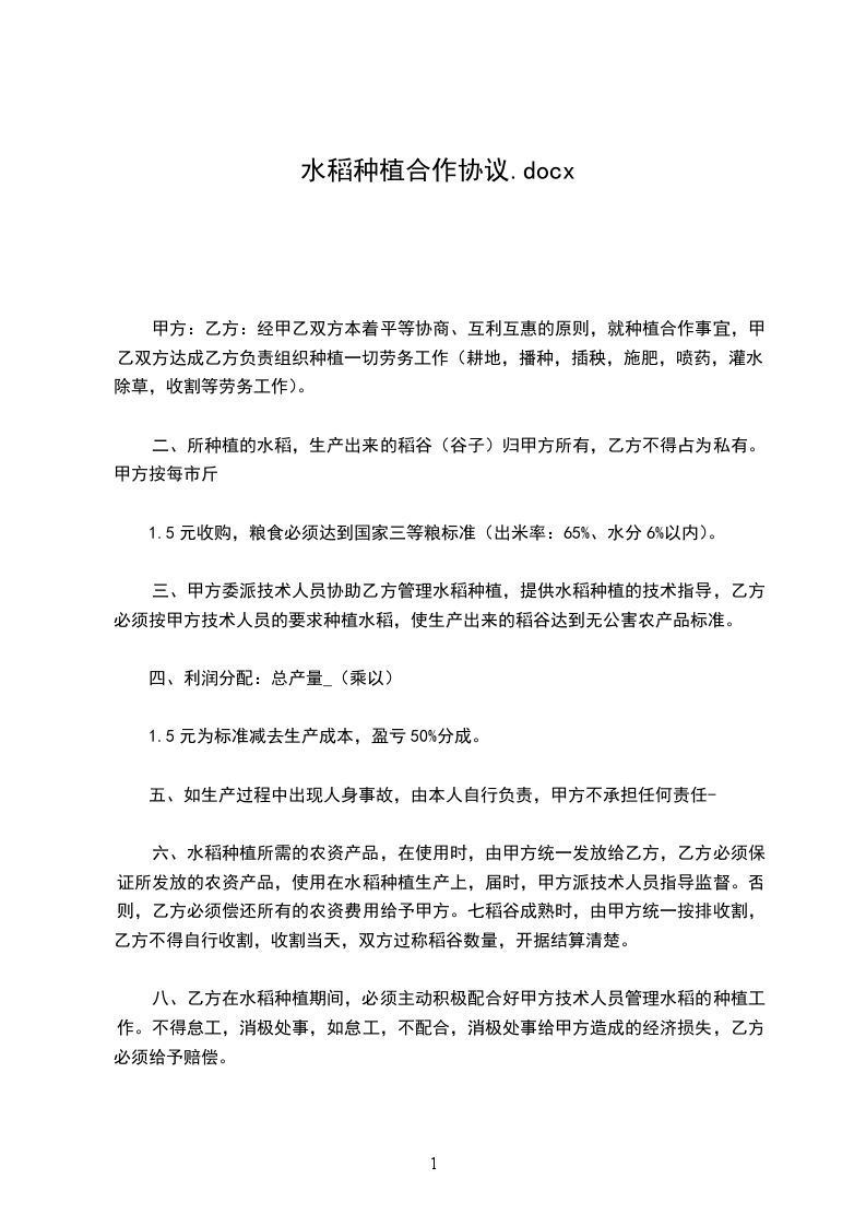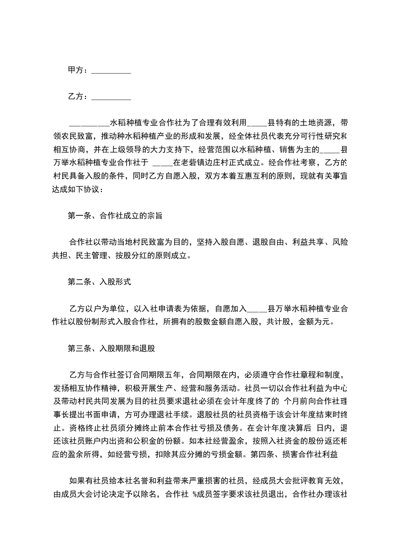 甲方与乙方经友好协商,同意合股种植水稻,为双方的利益,现就合作事宜签订合同如下: