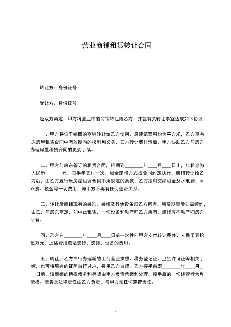 甲方:(转让方)身份证号码: