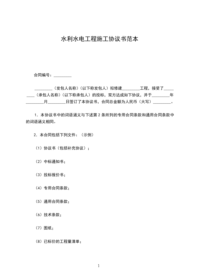 1.本协议书中的词语涵义与下述第2条所列的专用合同条款和通用合同条款中的词语涵义相同。