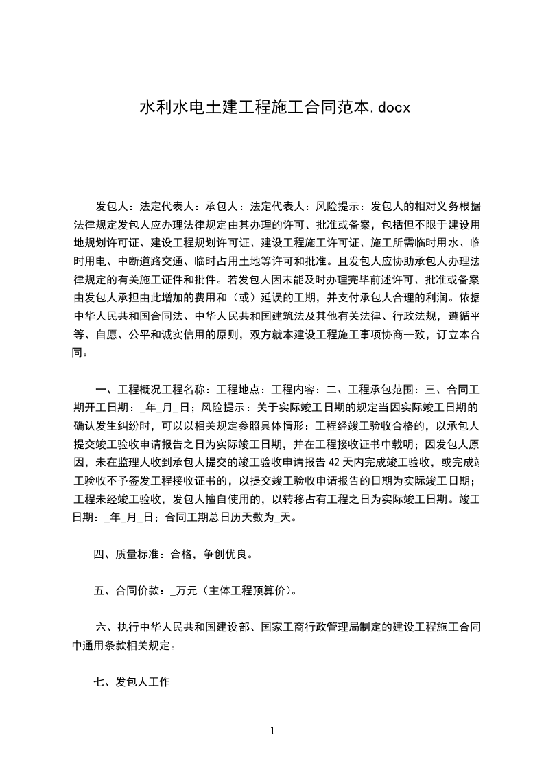 6.本合同一式_________份。其中正本贰份,双方各执壹份,副本_________份,发包人执_________份,承包人执_________份,其余副本由发包人分送有关单位。