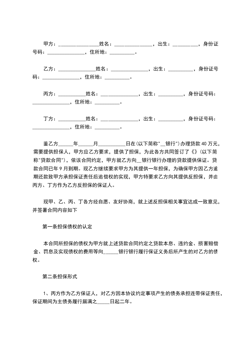 第八条 贷款到期后一个月,如借款方不按期归还本息时,由担保单位(或担保人)负责为借款方偿还本息和逾期罚息。