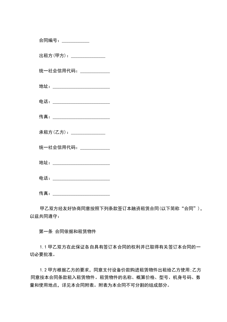 第一条 合同依据和租赁物件